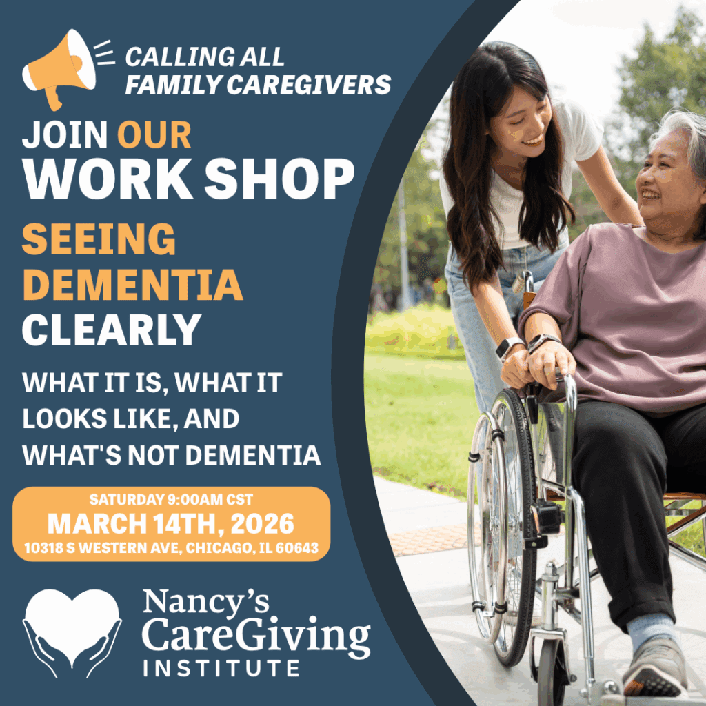 Dementia can be confusing and emotionally challenging, especially for family caregivers in Chicago supporting aging loved ones. To help bring clarity and confidence to dementia care, Nancy’s CareGiving Institute is hosting a free, in-person dementia workshop in Chicago on Saturday, March 14th, 2026, at 9:00 AM CST.